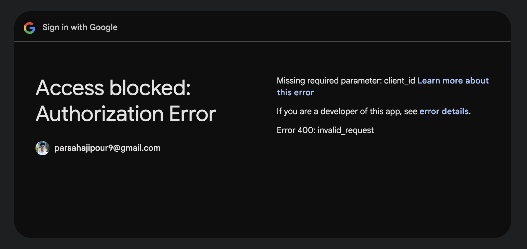 Issues like this continued to show up when I clicked on the sign in button, which meant the code on the project to redirect the website was working, but there were still authorization errors.